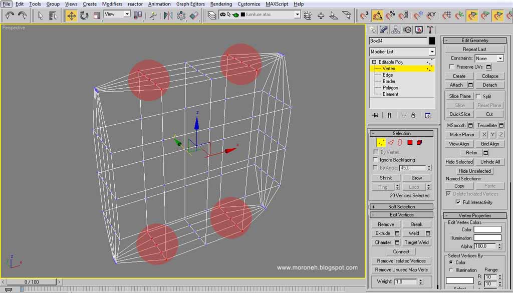 6. Pilih "Vertex", kemudian pilih "Select and Uniform Scale"/ tekan "R"