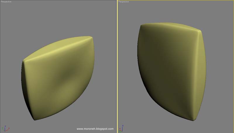 semakin besar "chamfer amount"nya, semakin melengkung ujung objeknya