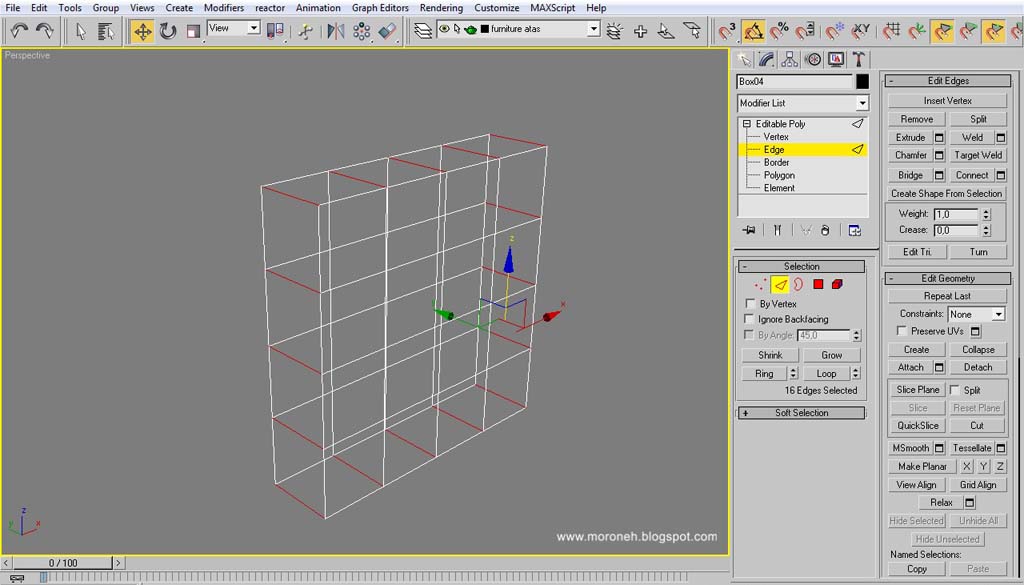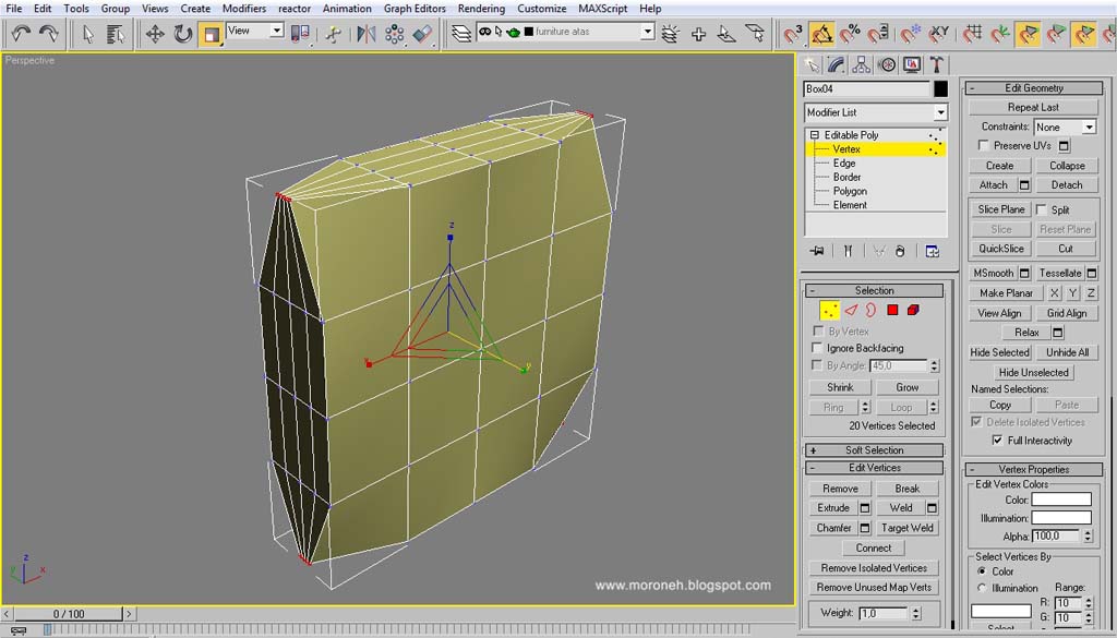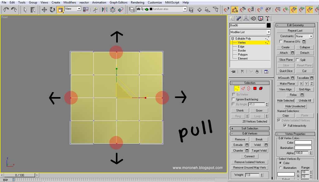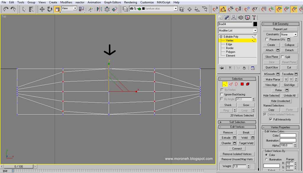 atau tarik vertex dengan menggunakan "select and move"/ tekan "W"